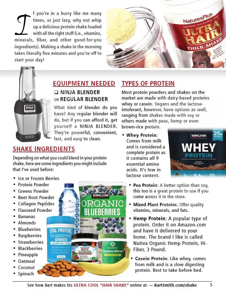So, when it comes to (protein) shakes, you've got several choices. For ME, what I like to do is make the kind of protein shake that actually benefits ... MY HAIR too! Let me explain ... You see, I already eat enough protein from all the right dietary choices I make. (i.e., what I eat on a daily basis) What I (really) wanted was something that could help me maintain (and grow) healthy hair and I found it! Check this out ...